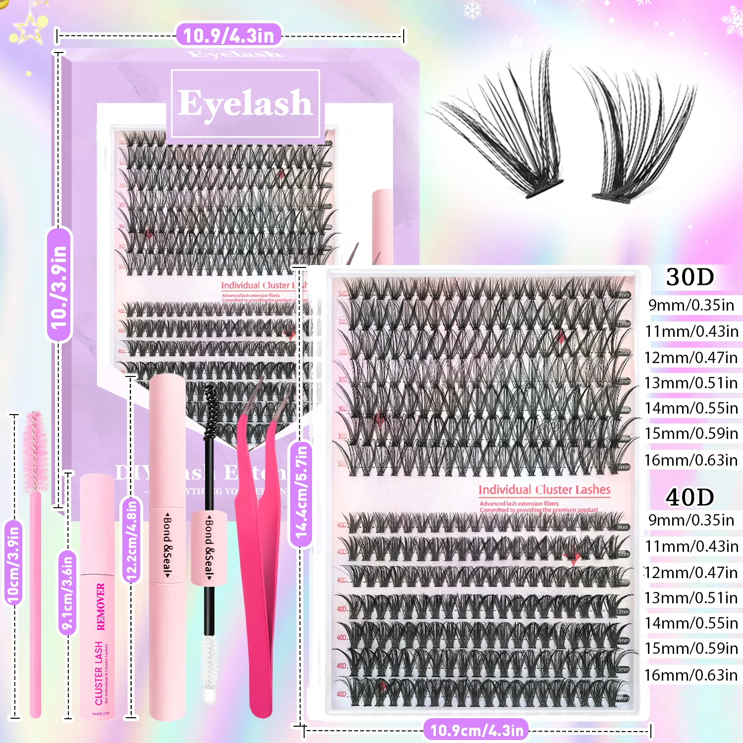The kit comes with a lash bond and seal, ensuring strong adherence and longevity of the lashes.