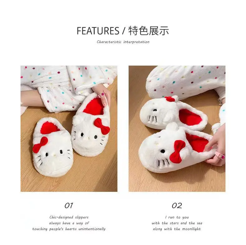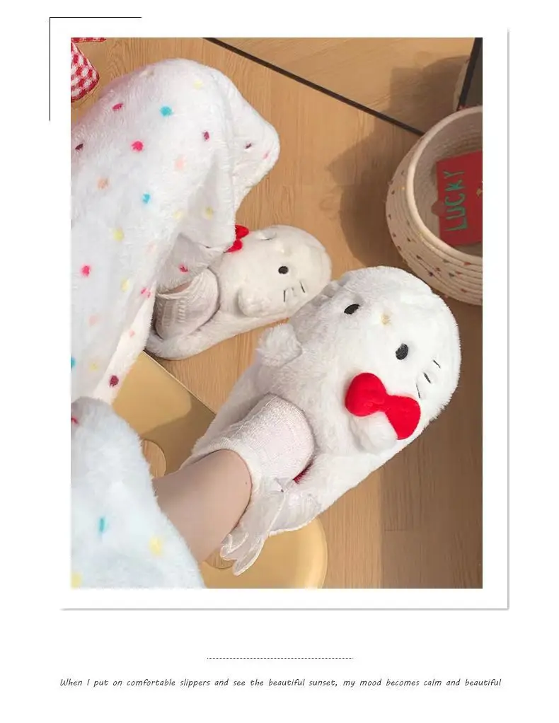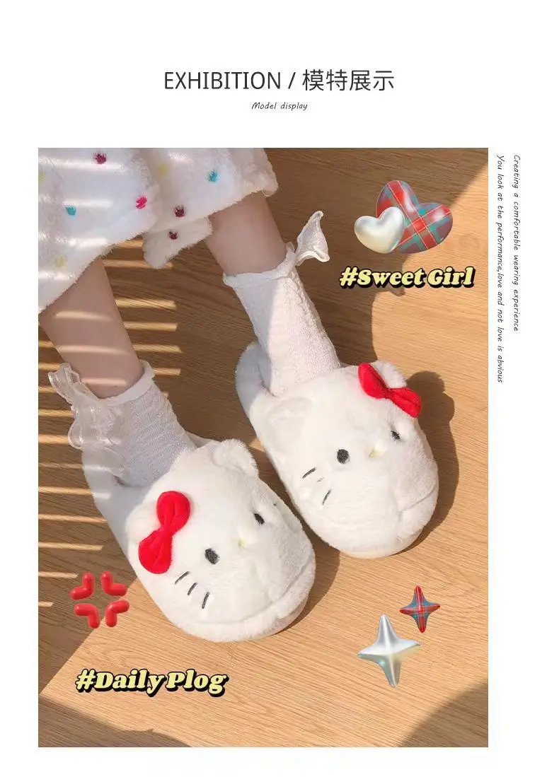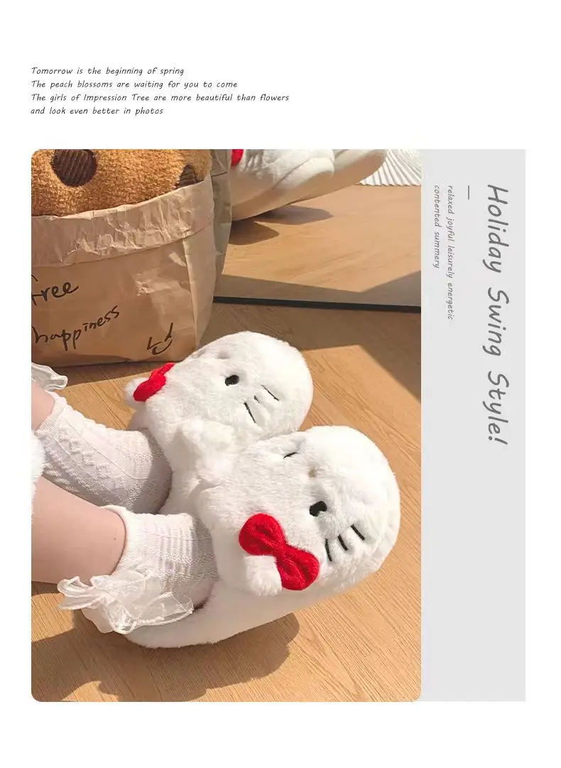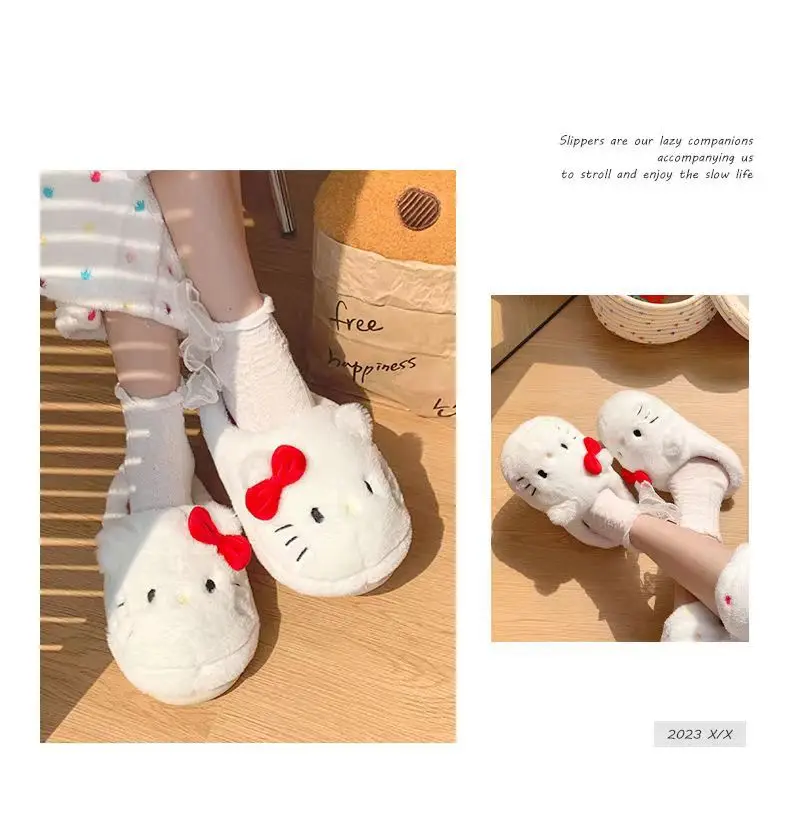 Anime Hello Kitty Warm Cotton Slippers Autumn/Winter Thick Anti Slip Cartoon Slippers Comfortable House Slippers Surprise Gifts