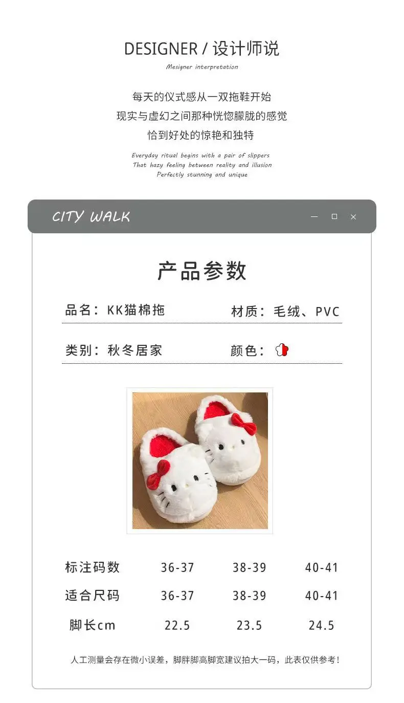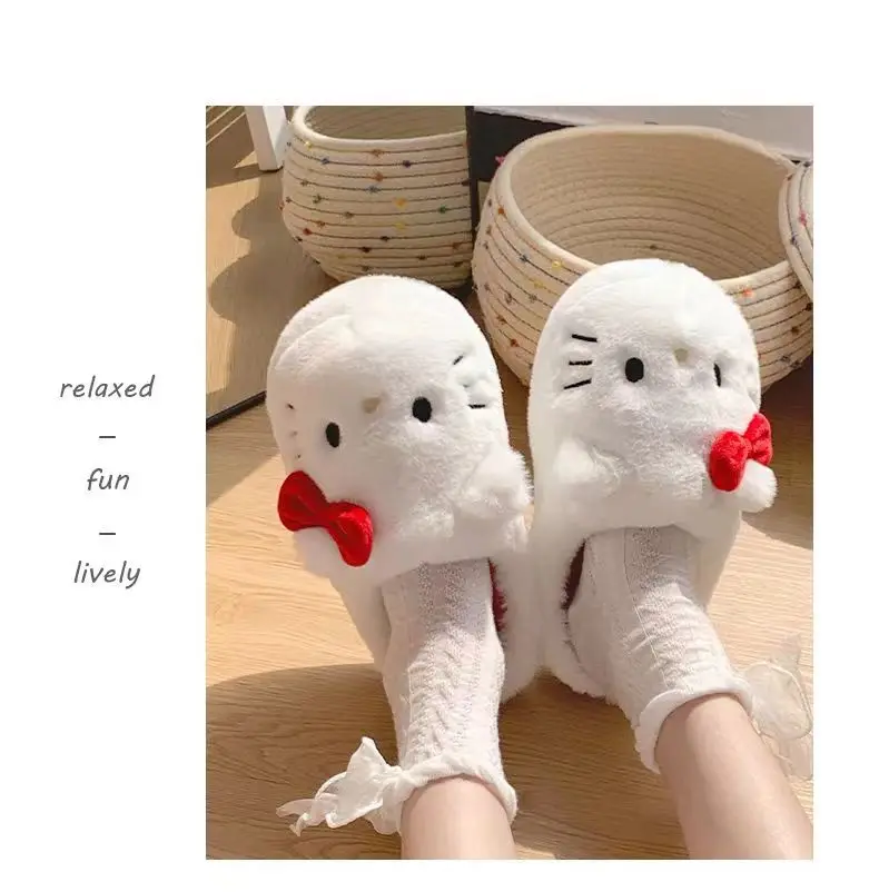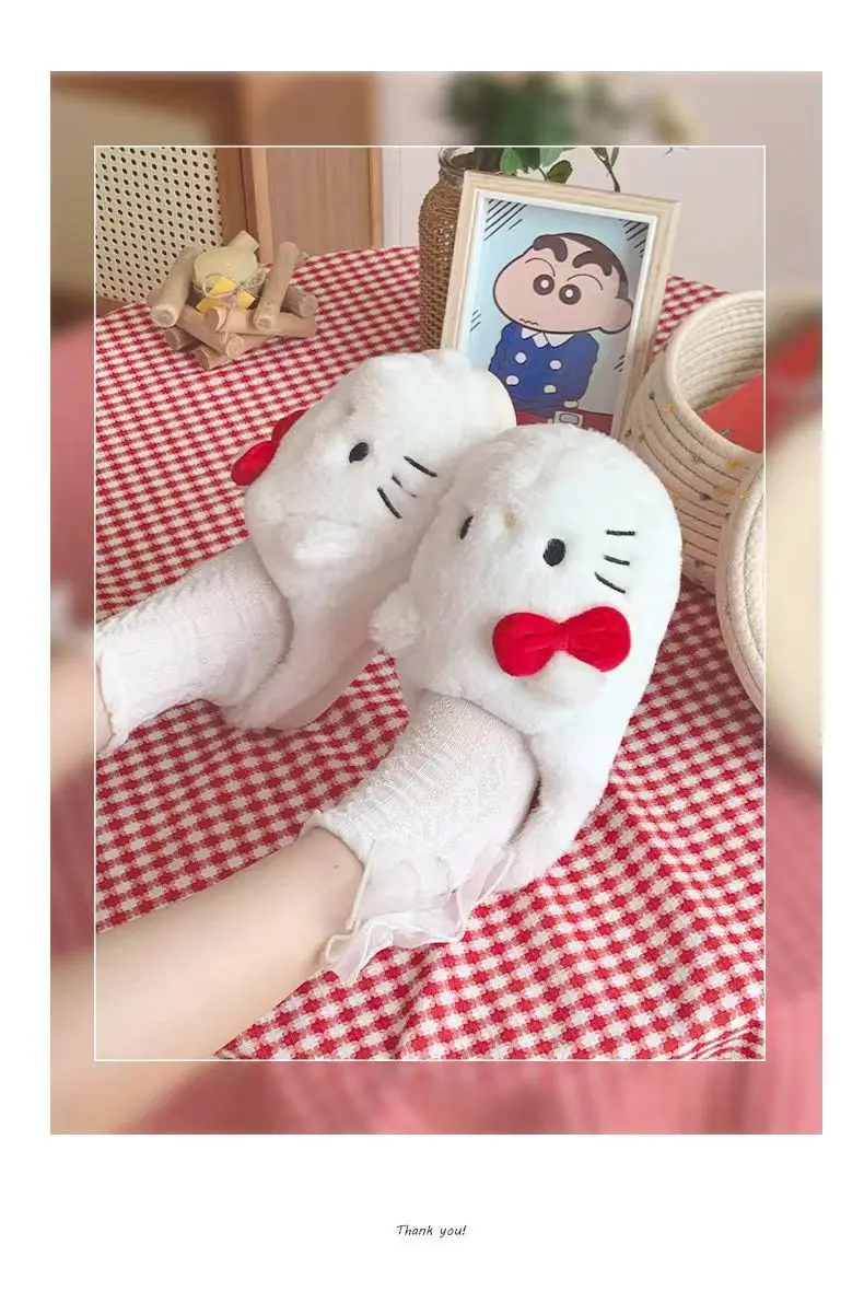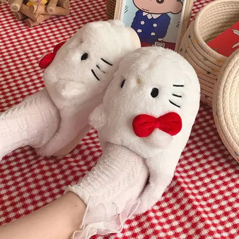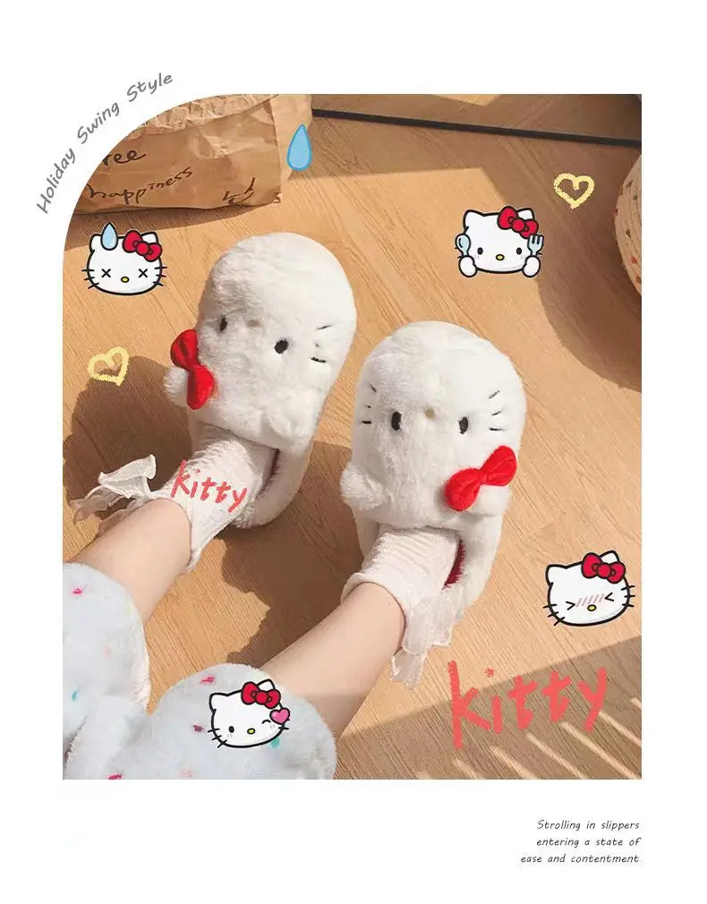 Anime Hello Kitty Warm Cotton Slippers Autumn/Winter Thick Anti Slip Cartoon Slippers Comfortable House Slippers Surprise Gifts