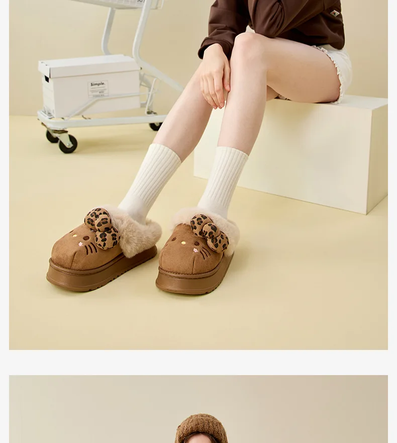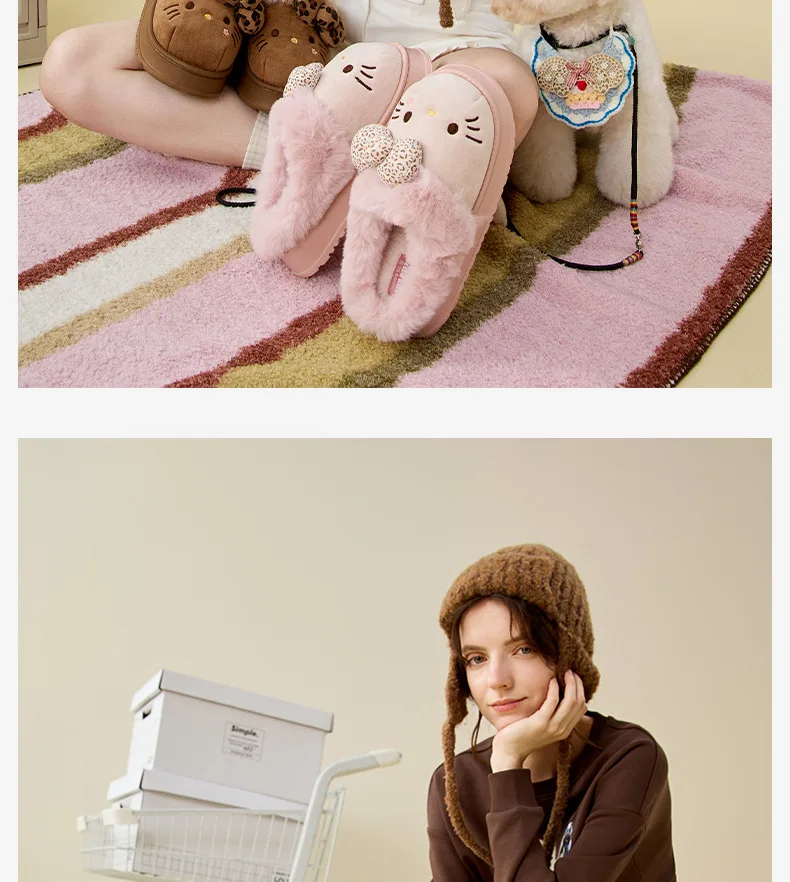 Hello Kitty Cartoon Cute Cotton Slippers Women Autumn Winter Anti Slip Wear-Resistant Warm Plush Eva Slippers Outdoor Home Gift