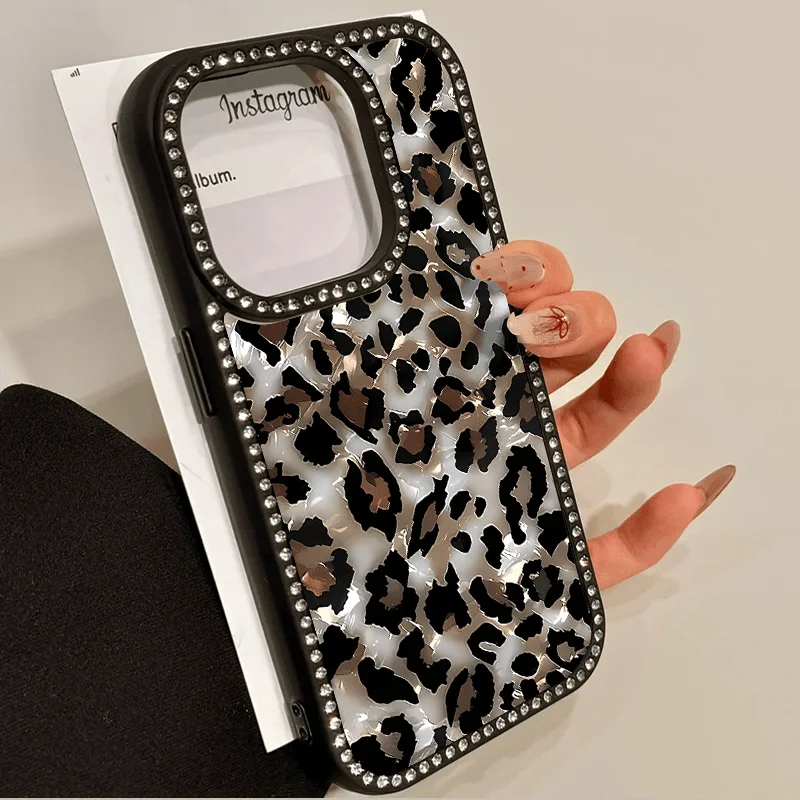 Marble Leopard Double Sided Diamond Set 3-in-1 Case for iPhone 17 to 11 Promax Plus Unisex with Diamond Trim